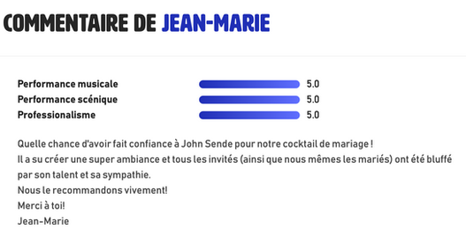 Chaque événement est spécial et se doit d'être célébré. Après 15 années de concerts partout en France, John met à profit son expérience et sa bonne humeur pour vous.